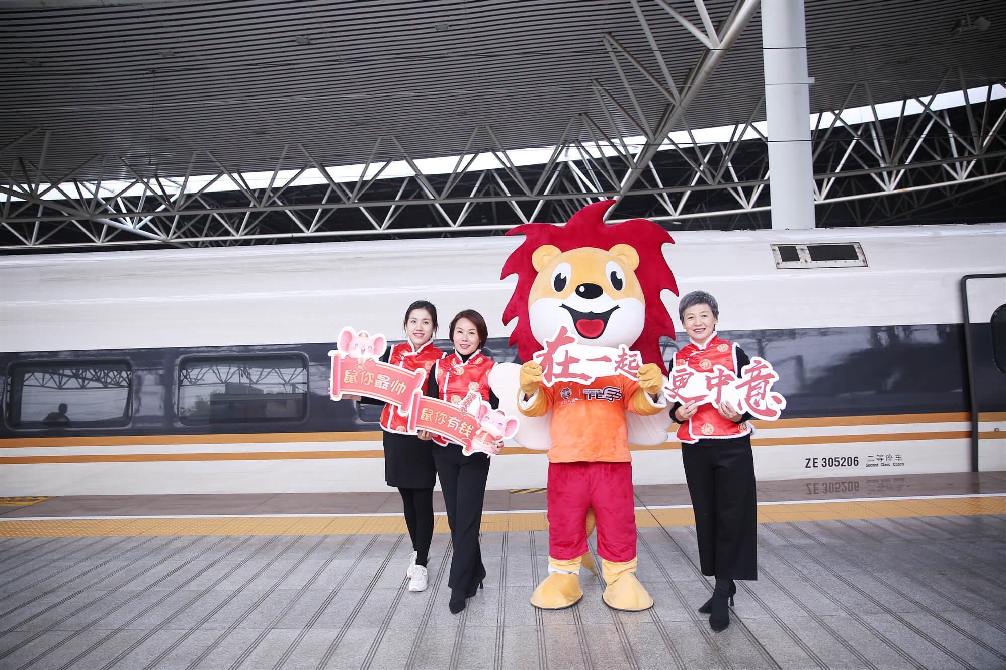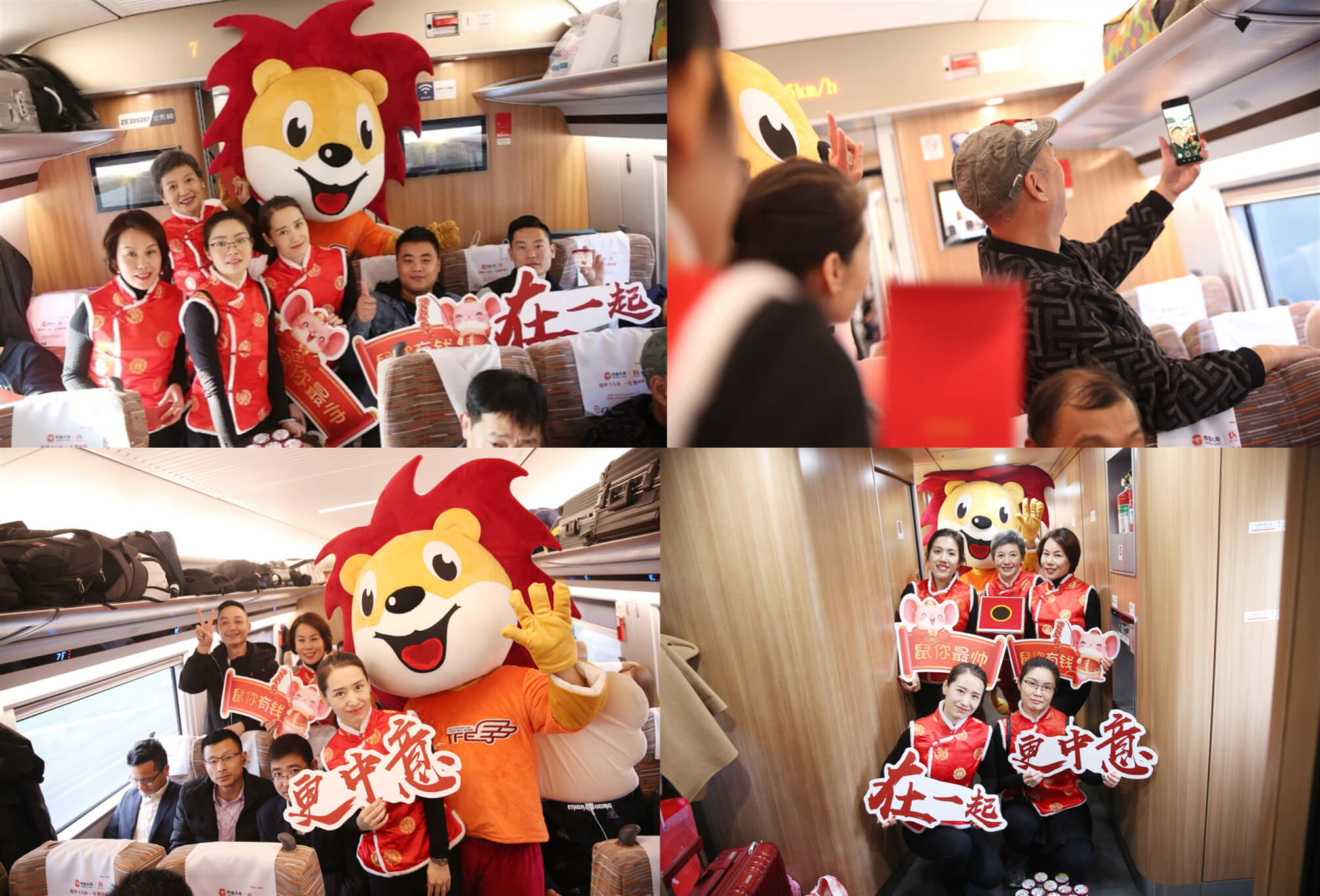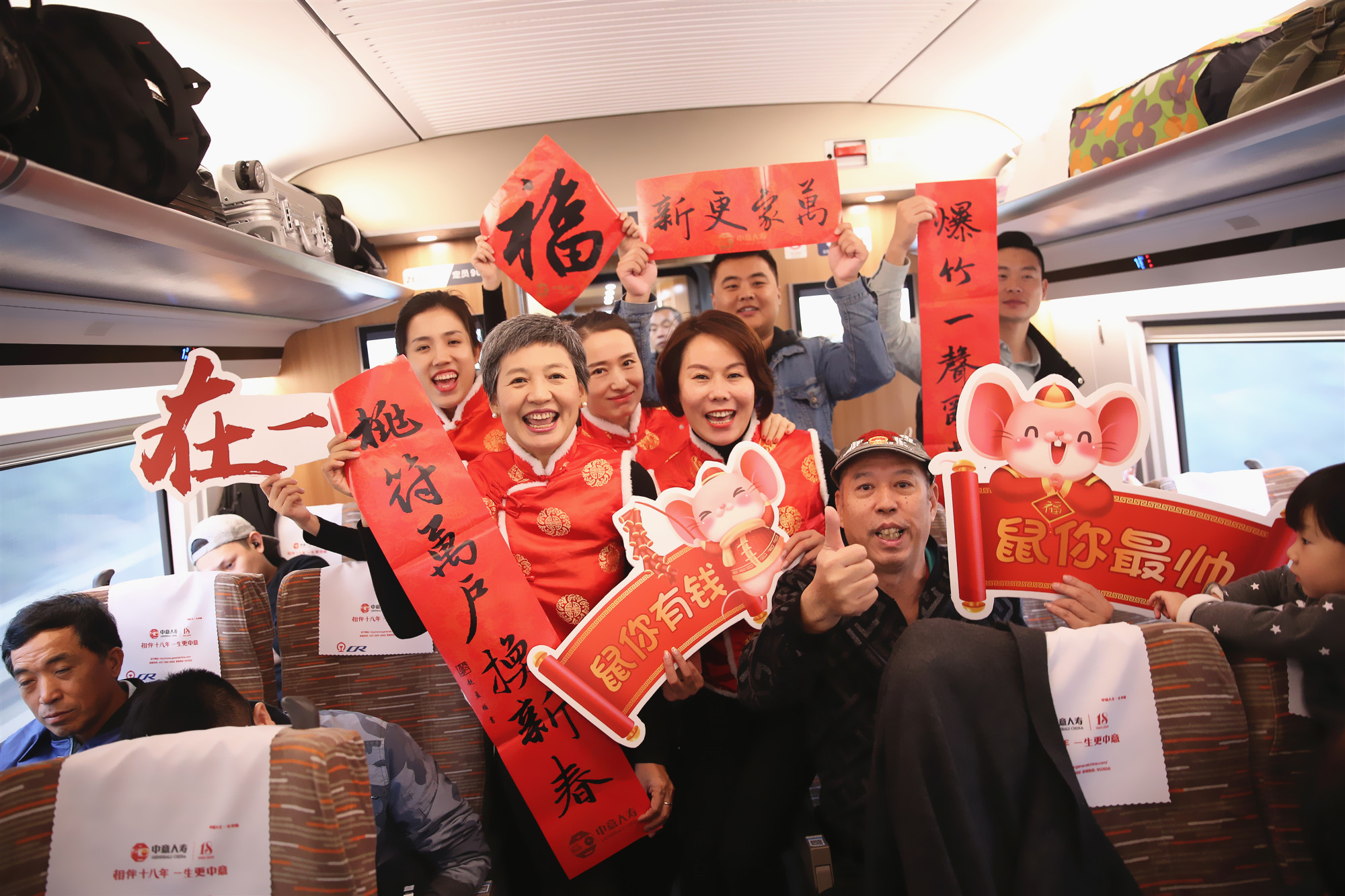 1月8日,從廣州南站準時發(fā)車的G72次列車上,中意人壽送福小分隊閃亮現(xiàn)身,將新年祝福和驚喜送到了乘客身邊。“各位旅客朋友們,大家好,歡迎乘坐中意人壽冠名的品牌列車。美好旅程,中意相伴,祝福大家鼠年有’鼠’不盡的中意”親和力十足的中意人壽優(yōu)秀代理人用簡單溫馨的開場白拉開了中意人壽高鐵“抓福氣 過新年”活動的序幕。